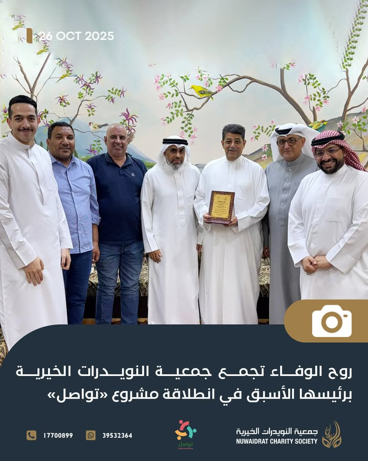 In a warm and friendly atmosphere filled with love and loyalty, the Nuwaidrat Charity Association launched its new project, “Tawasul” (Communication), which aims to build bridges of affection and appreciation with the men and women of the village. The association’s board of directors began the project with a special visit to the association’s former president, Mr. Hassan Darbas. Members listened to his valuable guidance and learned from his rich experience in the field of charitable work. He spoke to them about the most prominent challenges facing charitable work and how to overcome them with determination and willpower. At the end of the meeting, the current chairman of the board, Abdulmonem Al-Shaib, presented Mr. Hassan with a plaque of appreciation and gratitude for his dedicated service, thanking him for the warm welcome and generous hospitality in his home. The “Tawasul” project embodies the association’s mission to build bridges of communication between generations and to draw inspiration from the experience of pioneers in charitable and social work in the village of Nuwaidrat.